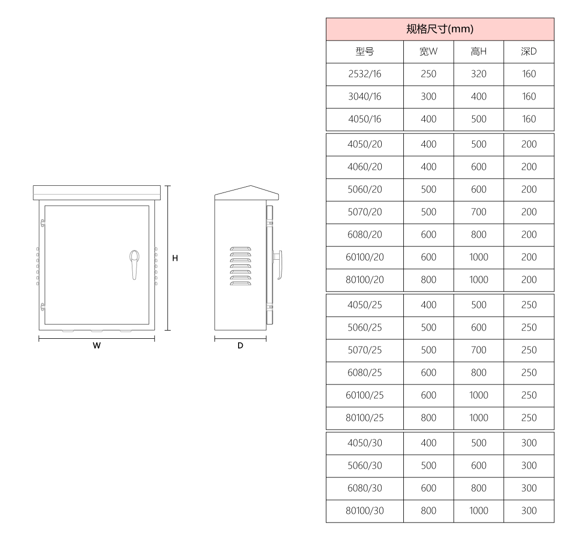 不锈钢户外箱采用不锈钢板材折弯焊接而成,箱体顶部装有人字形防雨罩,门板PU发泡密封条配合箱体U形槽边设计,具有很好的防水性能,结构合理,用途广泛。